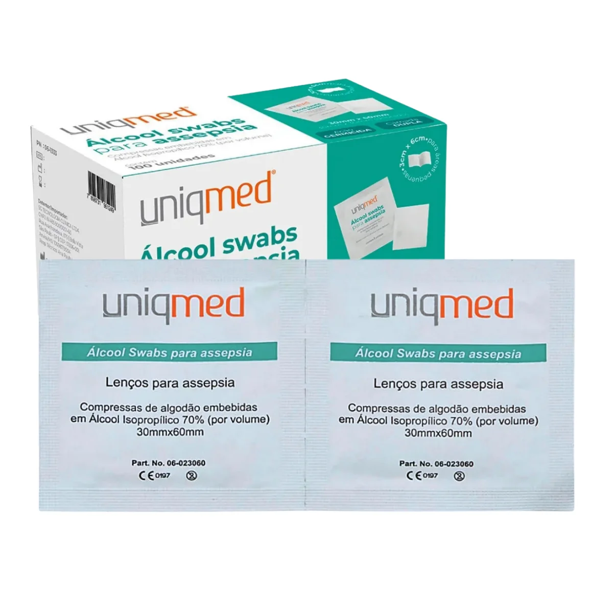 Álcool Swab Sachê 70% Lenço Umedecido – Caixa com 100 Unidades – Uniqmed