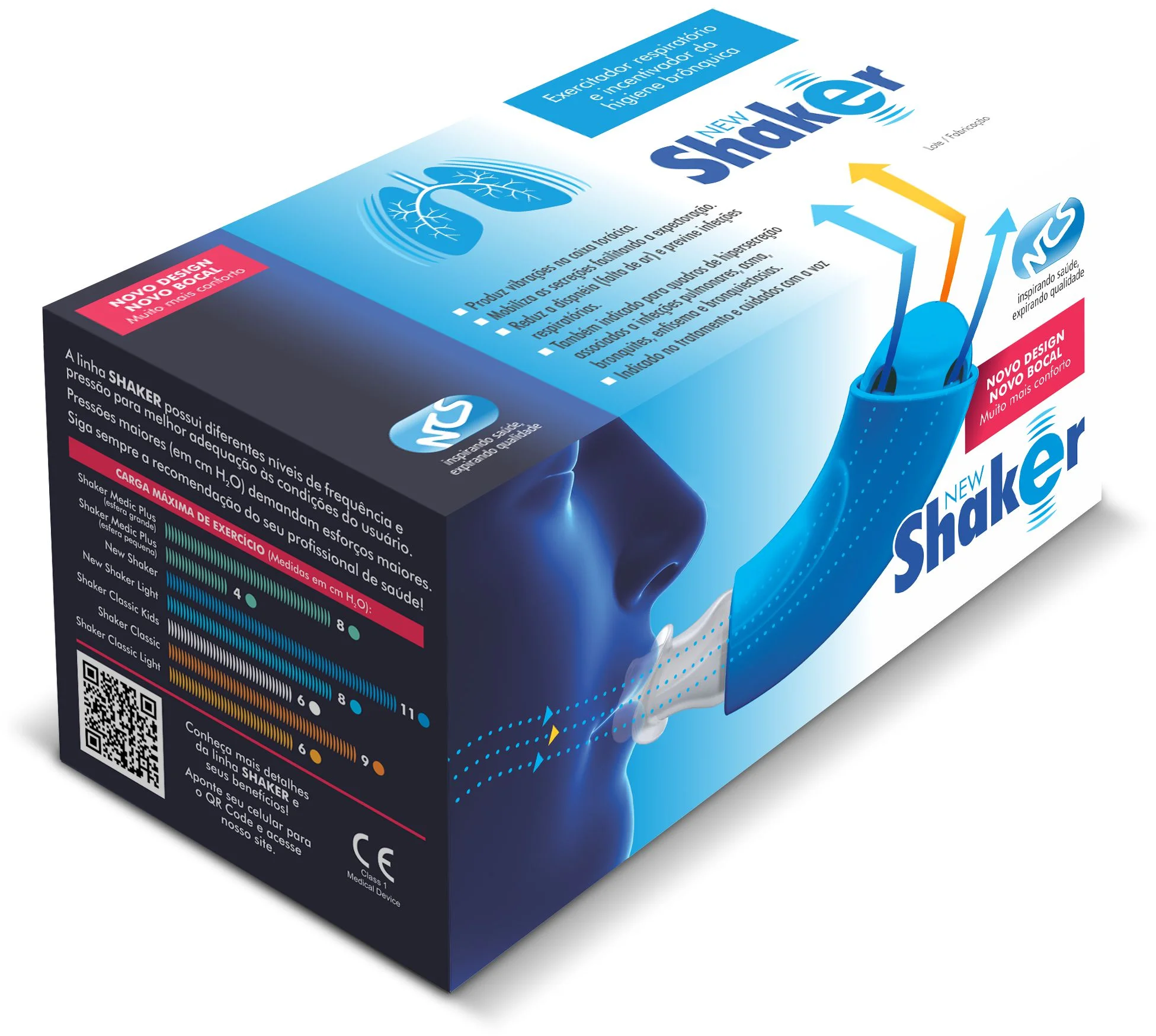 O Shaker Classic NCS é um aparelho fisioterapêutico desenvolvido para auxiliar no fortalecimento da musculatura respiratória e na eliminação de secreções pulmonares, promovendo uma respiração mais eficiente e saudável.