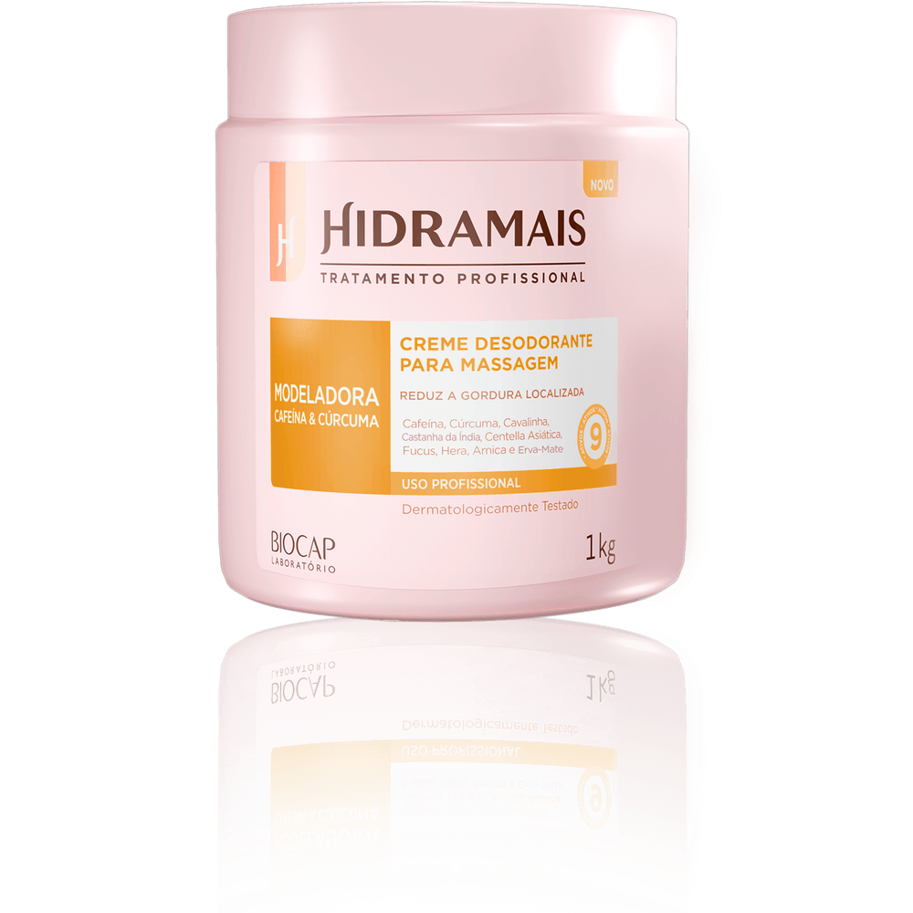 O CREME MODELADOR CAFEÍNA E CÚRCUMA HIDRAMAIS é um produto profissional desenvolvido para auxiliar em tratamentos corporais de modelagem e redução de medidas. Formulado com ativos potentes como cafeína e cúrcuma, ele estimula a circulação local, promove firmeza e melhora a textura da pele, deixando-a mais lisa e tonificada.