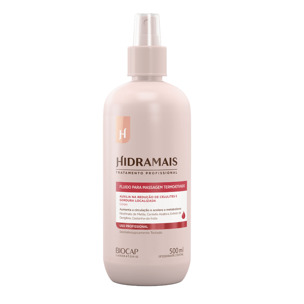 O FLUÍDO PARA MASSAGEM TERMOATIVADO HIDRAMAIS é um produto de uso profissional desenvolvido para potencializar os efeitos da massagem, promovendo aquecimento na região aplicada. Sua fórmula especial estimula a circulação local e auxilia em tratamentos estéticos que visam reduzir medidas e melhorar o aspecto da pele.