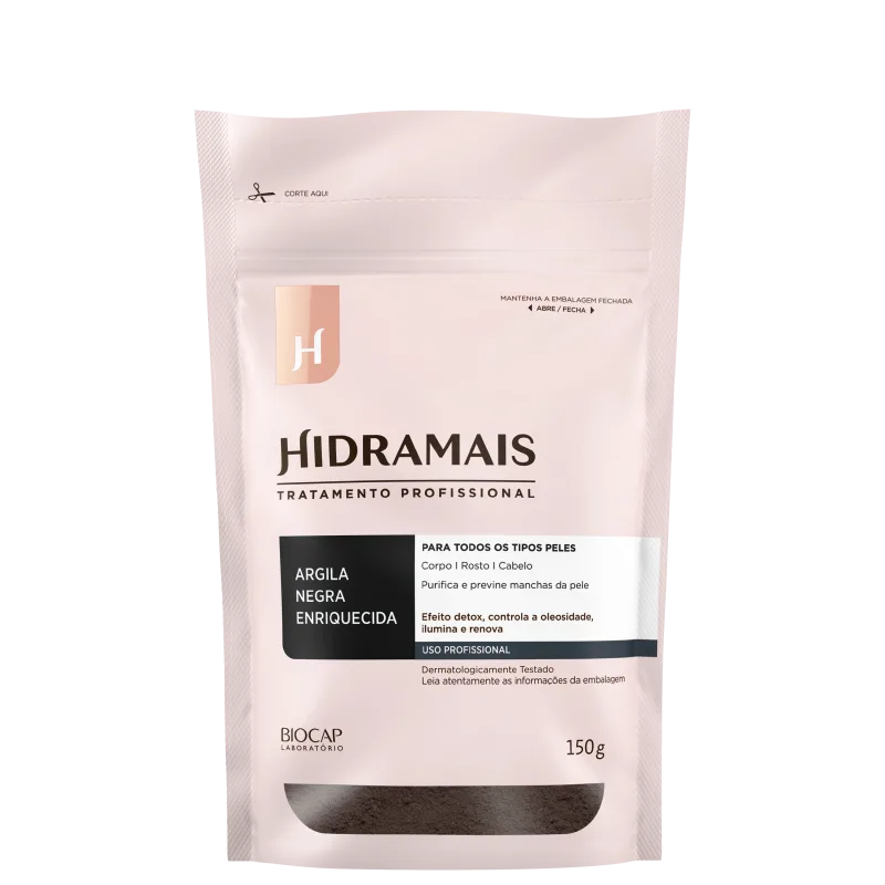 A ARGILA NEGRA ENRIQUECIDA EM PÓ HIDRAMAIS é uma argila mineral de alta pureza, rica em enxofre, silício e titânio, com propriedades revitalizantes e regeneradoras. Indicada para todos os tipos de pele, especialmente as maduras e desvitalizadas, ela promove limpeza profunda, desintoxicação e estimula a renovação celular, deixando a pele mais firme e luminosa.